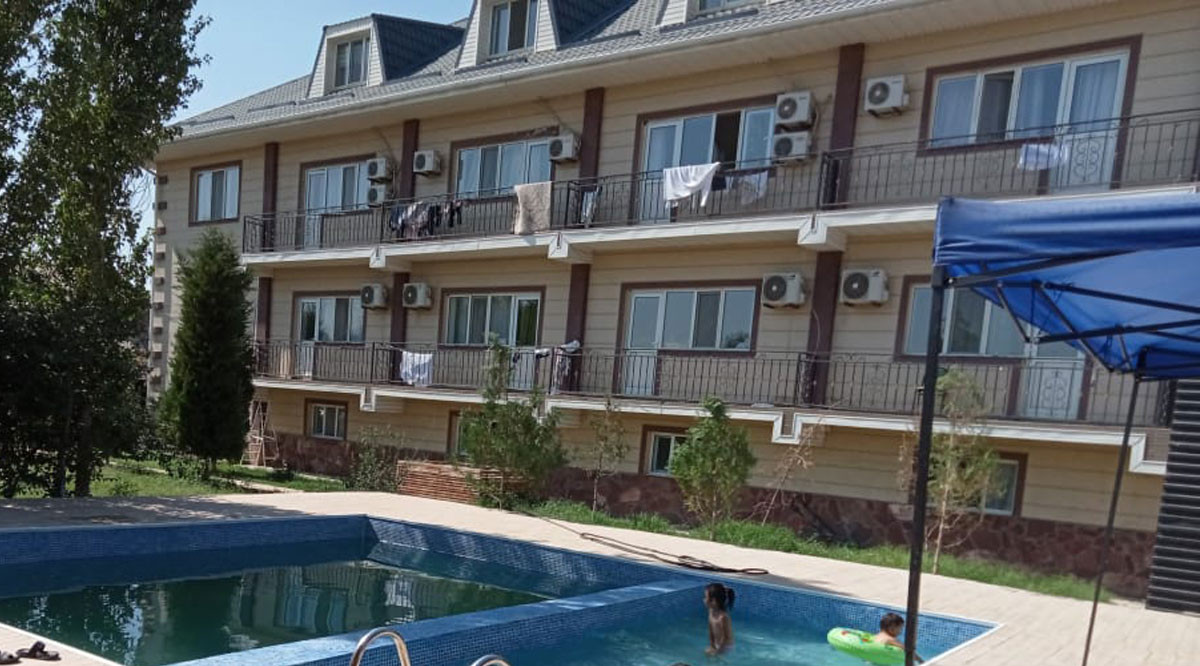 Озелененная территория на которой растут облагороженные ели и туи в перемежку с розами и плодовыми деревьями.Источник находится на территории санатория. Индивидуальный подход к каждому отдыхающему. Профессиональный медицинский персонал внимательно и вежливо обслужит всех отдыхающих санатория. Разнообразное диетическое меню приятно вас удивит. Обилие фруктов и овощей.Восточное гостеприимство. Для все желающих предоставляем организованные экскурсии на комфортабельных автобусах в Туркестан,а также обзорная экскурсия в Ташкент, Самарканд,для этого обязательно наличие загранпаспорта.